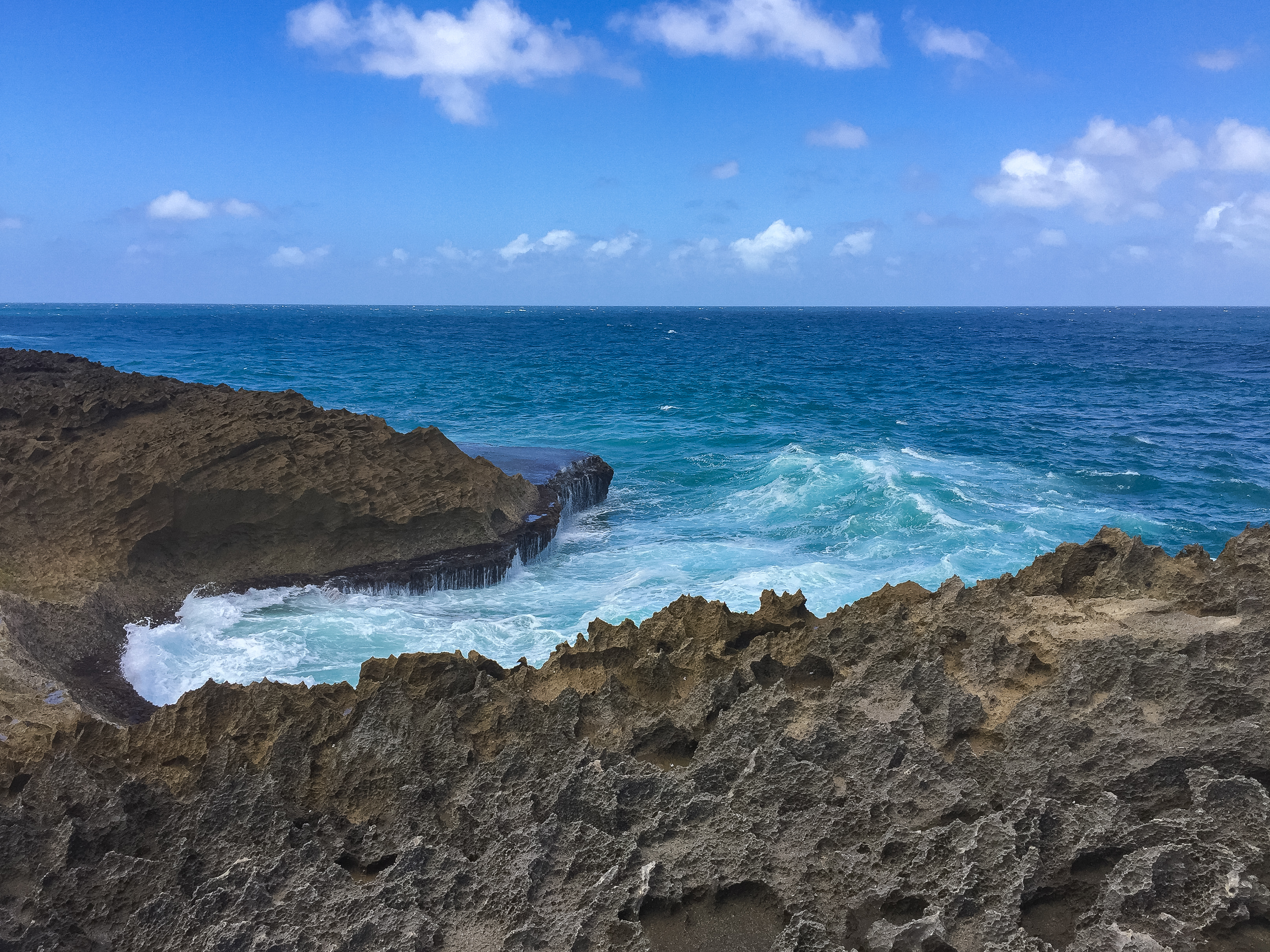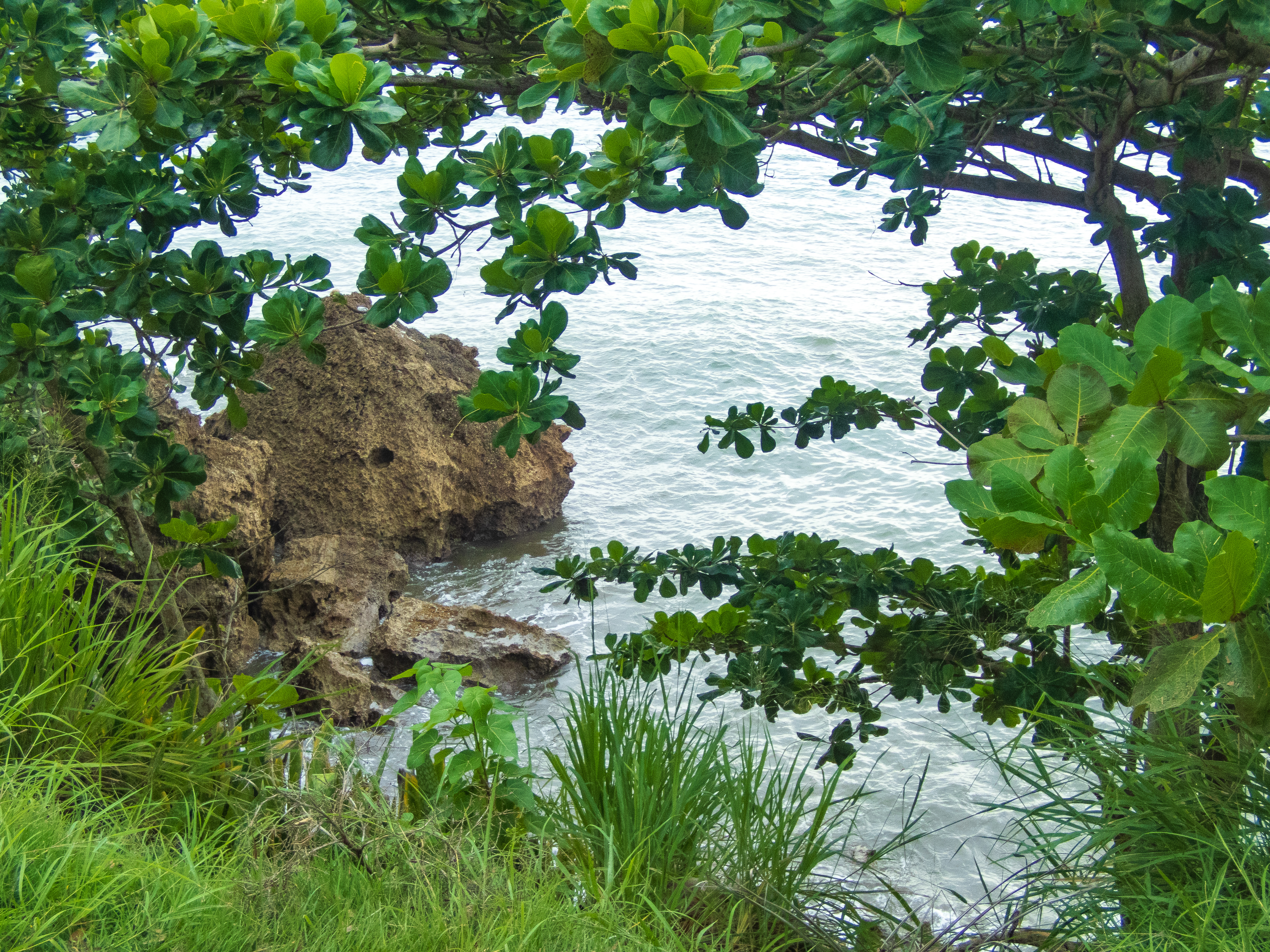 When we arrived at Jobos we were amazed. This place was gorgeous. We hopped out of the car, surfboard in hand for Trevor, and snorkeling gear in hand for me (I don’t surf), and ran down to the water where we spent a good half the day. The water was crystal clear and full of sea life and there was this cove up above that I explored while Trevor surfed.